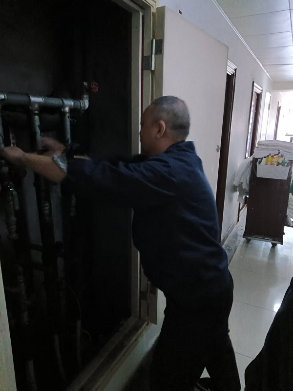 供暖前期為了保障每家每戶的管道能正常供熱,工程部針對(duì)供暖主管道進(jìn)行各層排查,確保無滲漏情況、對(duì)存在漏水的部位進(jìn)行維修。安排專業(yè)人員對(duì)供熱鍋爐進(jìn)行全面檢查,包括燃燒器、熱交換器、安全閥等部件,確保其處于良好的工作狀態(tài)。