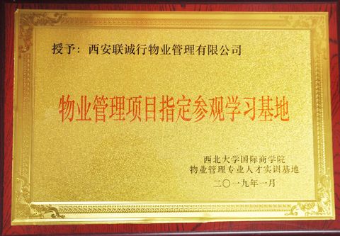 2019年 西北大學(xué)國(guó)際商學(xué)院物業(yè)管理專業(yè)人才實(shí)訓(xùn)基地“物業(yè)管理項(xiàng)目指定參觀學(xué)習(xí)基地”