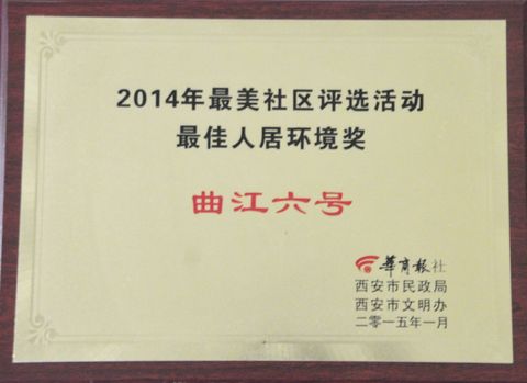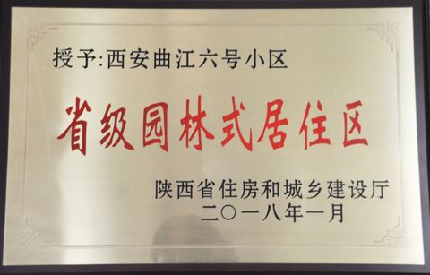 2010年 曲江6號(hào)被陜西省住房和城鄉(xiāng)建設(shè)廳授予“陜西省物業(yè)管理示范住宅小區(qū)”稱號(hào)