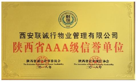 2018年 陜西省AAA級(jí)信譽(yù)單位