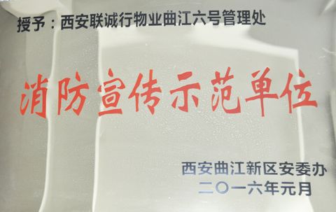 2015年 西安曲江新區(qū)安委辦“消防宣傳示范單位”