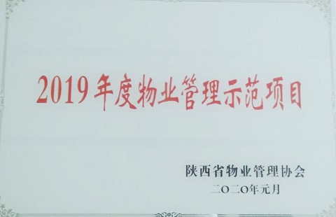 2019年 朱雀云天獲陜西省物業(yè)管理協(xié)會(huì)“物業(yè)管理示范項(xiàng)目”